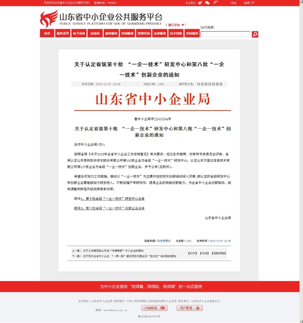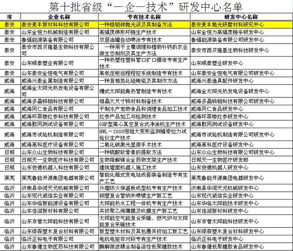 近日,《山東省中小企業(yè)局文件(魯中小企局字[2015]64號)》公布了省級第十批 “一企一技術(shù)”研發(fā)中心和第八批“一企一技術(shù)”創(chuàng)新企業(yè)名單,泰安麥豐新材料科技有限公司通過市局推薦、省局初審和專家委員會嚴(yán)格評審,成功獲評省級“一企一技術(shù)”研發(fā)中心。